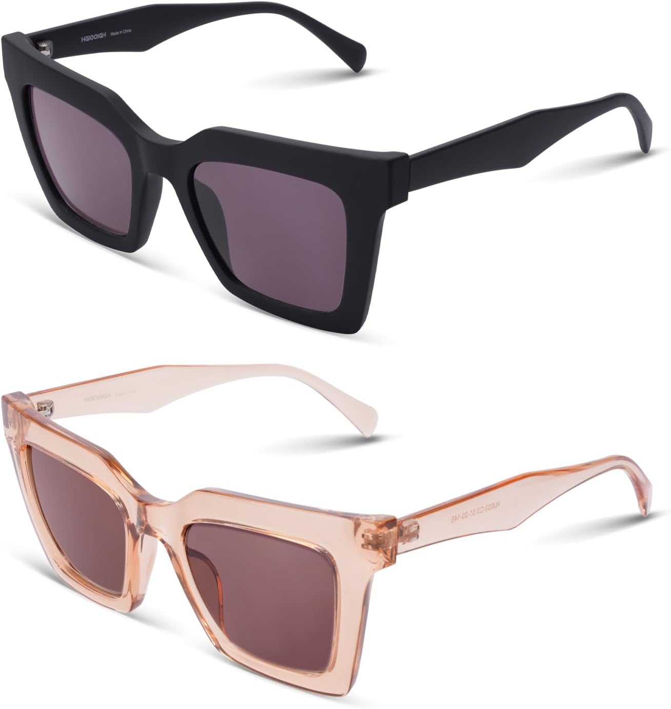 • SIZE: Lens Width: 51mm/2.01in; Bridge: 21mm/0.83in; Temple Length: 145mm/5.71in; Frame Width: 142mm/5.59in; Lens Height: 43mm/1.69in. The reader sunglasses for women with funky square oversized frame design is suitable for all face shape and makeup, and against the high energy blue light, high light and UV400.
