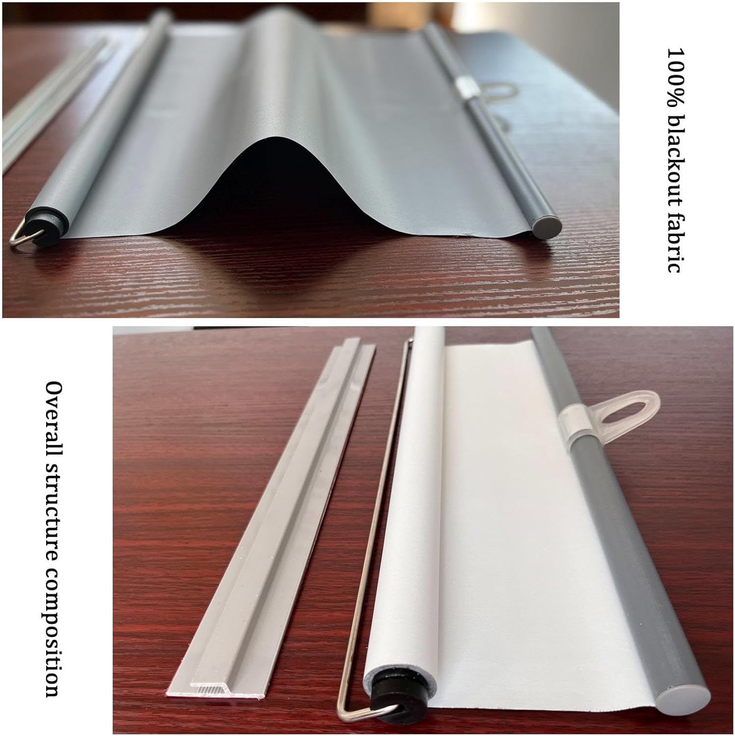 Product Description:The blackout roller blinds are made of eco-friendly polyester fabric with good light and heat blocking properties, making it an excellent choice for sun protection in homes and offices.In summer, it blocks sunlight and heat sources, making the room cooler and low energy consumption. In winter, it saves indoor heat sources, keeps the room at a constant temperature and provides optimal sunlight and privacy protection.The best feature of the portable roller shades is its automatic retractable function. When you need to open or close the curtains, just pull the roller blind down or up to the desired position and the spring will automatically lock to keep the roller blind in a stable position.Product Specification:Name: blackout roller blindsType:Automatic rising spring roller blindMaterial: environmentally friendly polyester double-sided coated clothColour: grey, light blue, creamSize: width x height ( customisable )Stretching mode: up and downPacking: Roller blind x1 + strong self-adhesive card stripsCaution:When using blackout roller blinds, please avoid pulling the curtain fabric with excessive force to avoid rebound failure.The measurement of the width of the roller blind includes the fixings, so the actual width of the roller blind will be about 2cm smaller. If you order a roller blind with a width of 120 cm, the width of the fabric will be approximately 118 cm.