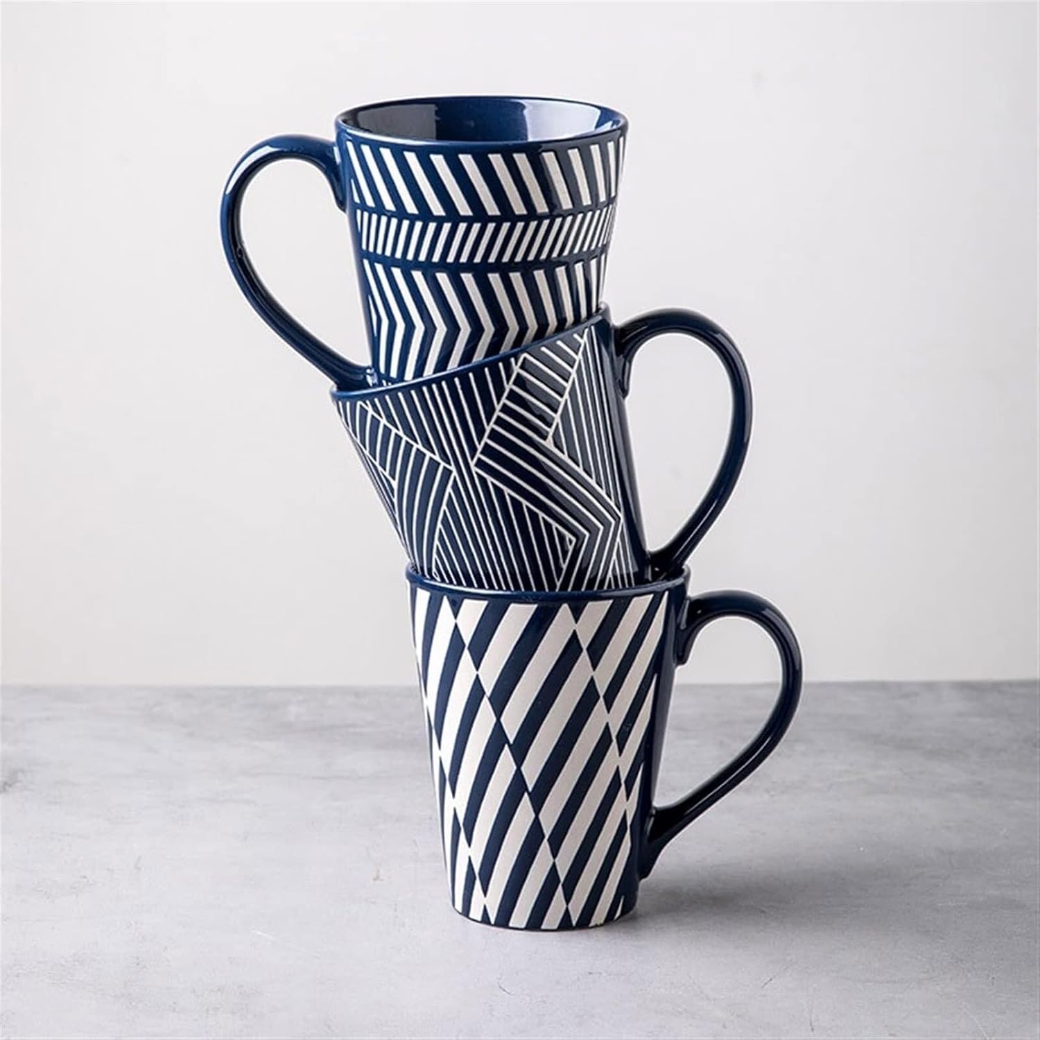 The Creative Ceramic Mug combines style and practicality with its large 450ml capacity and elegant blue embossed geometric pattern. Designed with clean lines and a tapered shape, this mug adds a touch of sophistication to any kitchen or office space. Ideal for a variety of uses, from morning coffee to enjoying a bowl of cereal, this mug ensures convenience with every sip. Made from ceramic, the smooth, glossy glaze finish makes cleaning a breeze, while the large diameter design provides ample space for your favorite beverages. Perfect for daily hydration or as a thoughtful gift for someone special.