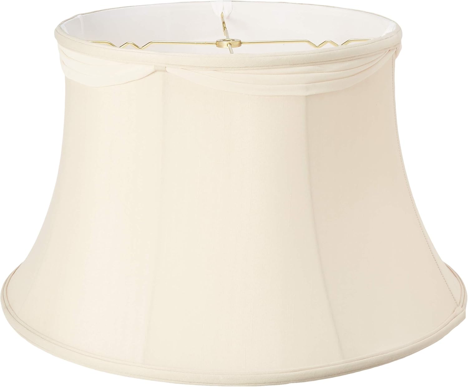 This draped shallow bell designer lampshade is a part of Royal Designs, Inc. Timeless designer shade Collection and is perfect for anyone who is looking for an elegant yet detailed lampshade. Royal designs has been in the lampshade business since 1993 with their multiple shade lines that exemplify handcrafted quality and value. Exterior fabric: hand tailored silk-type shantung (except linen fabrics) interior fabric: off-white softback lining (black and other colored fabrics have gold lining) washer: standard brass-finish spider Fitter, use a finial to fasten shade. (All shades with 9"+ top diameter have a v-notch Fitter for use on a 6" or 8" reflector bowl) trim: top and bottom designer trim (single, double or braided) with vertical piping frame: heavy grade rust resistant metal frame bulb: suggested maximum wattage is 150-watt for most sizes (clip on shade Max 60W) height is measured by slant height from top to bottom of the lampshades' front face please measure your existing shade-aa replacement harp may be needed for a proper fit or additional adjustment if changing height of shade.